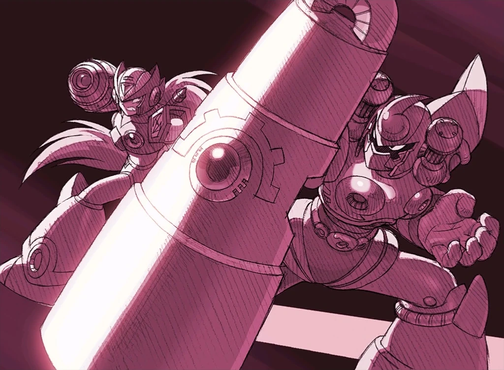 After the defeat of the eight Maverick bosses, they make an announcement on Christmas Eve to challenge X and Zero. Bit and Byte manage to defeat them with ease, capturing and locking them into a powerful drilling machine that would kill them, showing it on a screen in Doppler Town. Dr. Cain and Marty went to the rescue, Cain and Marty's pirates distracting Byte and several Mavericks while Marty goes to their location to give X the four power up chips found by the Maverick Hunters. Bit saw Marty approaching and confronted her, mocking her attempt to save them and making her see their deaths. When the drill was almost in X's head, she throws the chips at him in a last attempt to save him, and a large explosion occurs, Bit laughing and saying "Merry Christmas" to X's death. However, the explosion was caused by X, who gained a new armor thanks to the chips and destroyed the drills. X shot at Bit, causing high damage to him and destroying several Mavericks that were at distance with Byte. Seeing this, Byte returns to help Bit and Doppler appears with a dragon made of his chip worms. Byte asks Doppler to help Bit, but he makes his dragon attack with a powerful blast in the area X and the others where, the attack hitting Bit, Byte and Zero, who didn't have time to avoid it. Damaged, Byte (holding Bit, who appears to be either unconscious or dead) asks Doppler to give them a chance to defeat X, and he drops several worms to combine them into Godkarmachine O Inary. Despite the power increase, none of their attacks work on X, and X takes down both Godkarmachine O Inary and Dr. Doppler's dragon with one shot. As a last attempt to defeat X, their remains merged into a giant two headed worm-like monster, but it collapsed before it could attack because of the damage they had received.